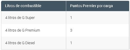 PUNTOS PREMIER AL CARGAR COMBUSTIBLE